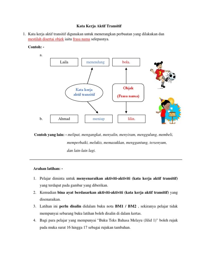 Bahasa melayu tahun 3 (kata kerja aktif transitif & tak transitif). Kata kerja aktif transitif dan kata kerja aktif tak transitif berserta latihan dalam buku jilid 1 . Kata kerja tak transitif ( perbuatan tidak melampau ). 2) orang itu memperbesar rumahnya. Latihan bahasa malaysia tahun 1 google search free kindergarten . Kata kerja aktif tak transitif language malay grade level 2 school.